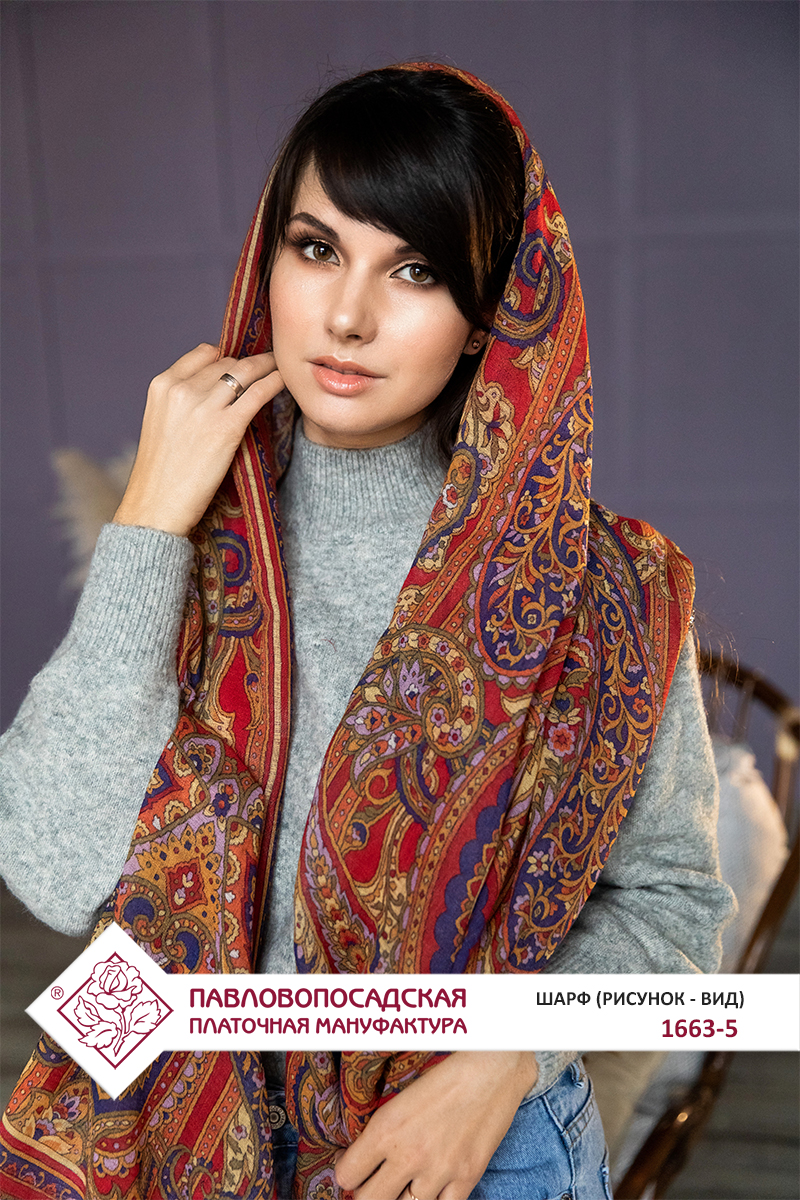 Палантин шерстяной набивной "Знатная дама", вид 5, 80х230 см