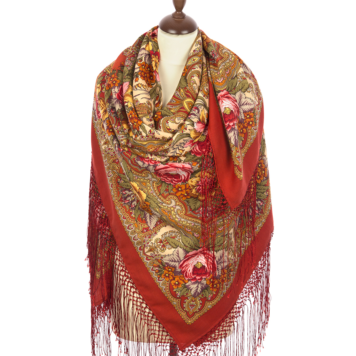 Многоцветный платок из уплотненной шерстяной ткани с шелковой бахромой "Счастливица", вид 3, 148х148см