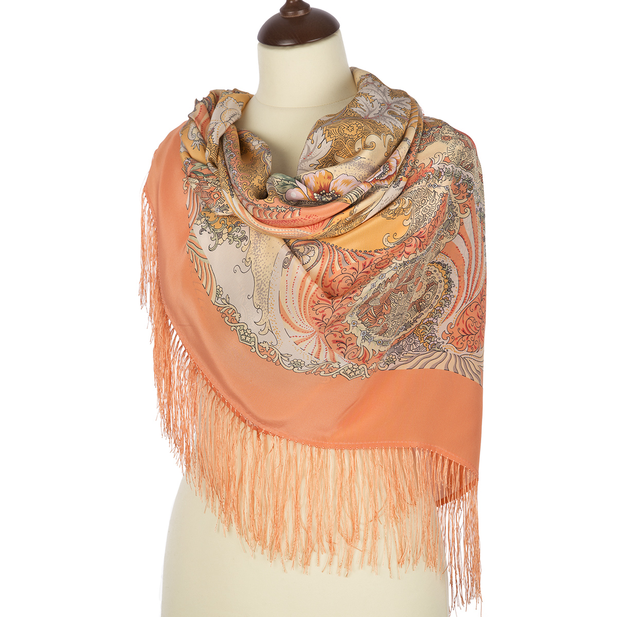 Платок шелковый (крепдешин, бахрома) "Ласковый прибой", вид 3, 130х130 см