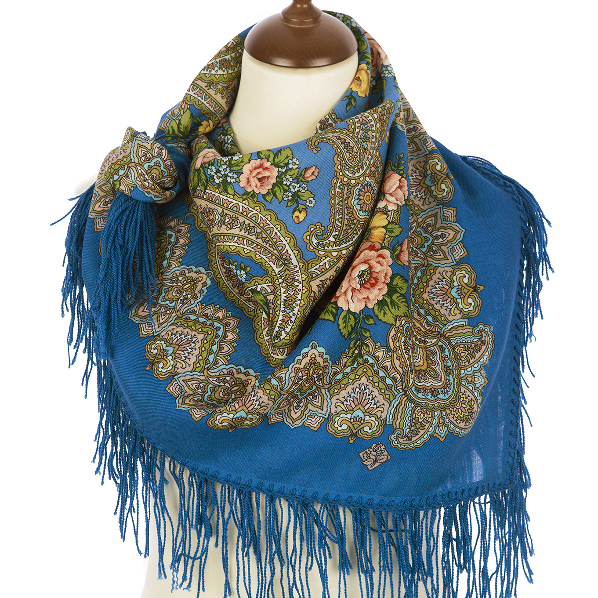 Платок шерстяной с шерстяной бахромой "Озёрный край", вид 13, 89х89 см