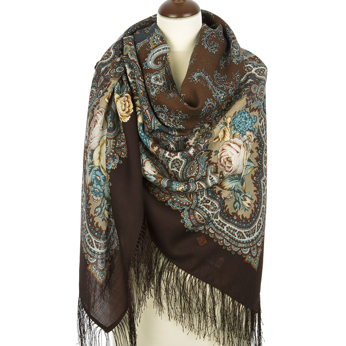 Платок шерстяной с шелковой бахромой "Испанское вино", вид 17, 146х146 см
