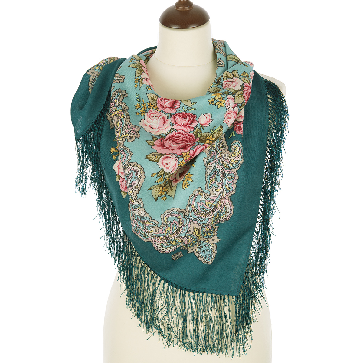 Платок шерстяной с шелковой бахромой "Румянец", вид 9, 89x89 см