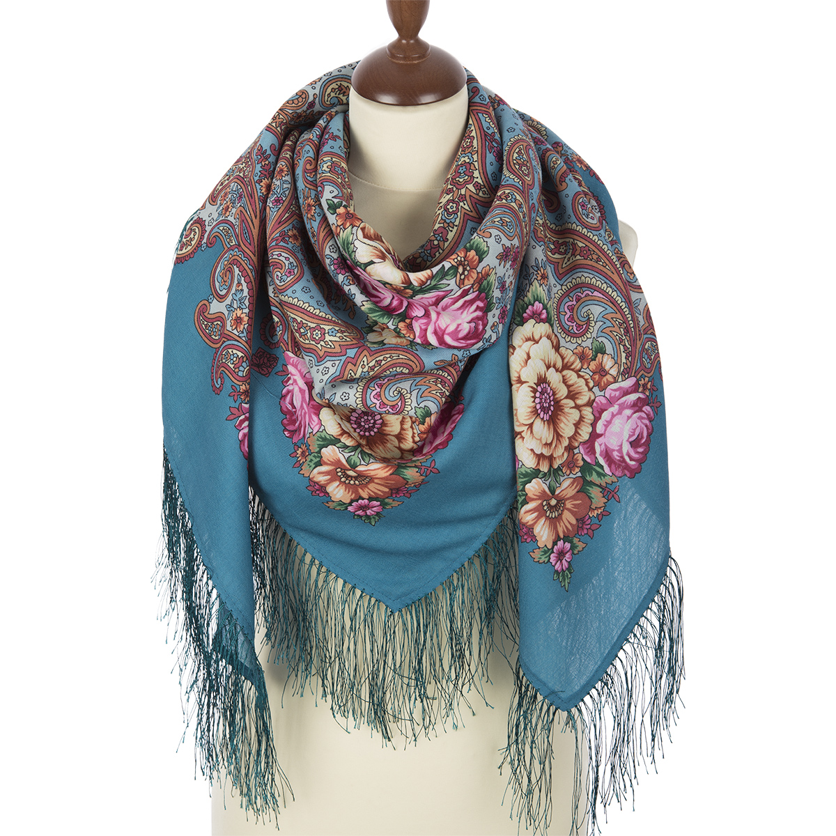 Платок шерстяной с шелковой бахромой "Мечты о счастье", вид 12, 125х125 см