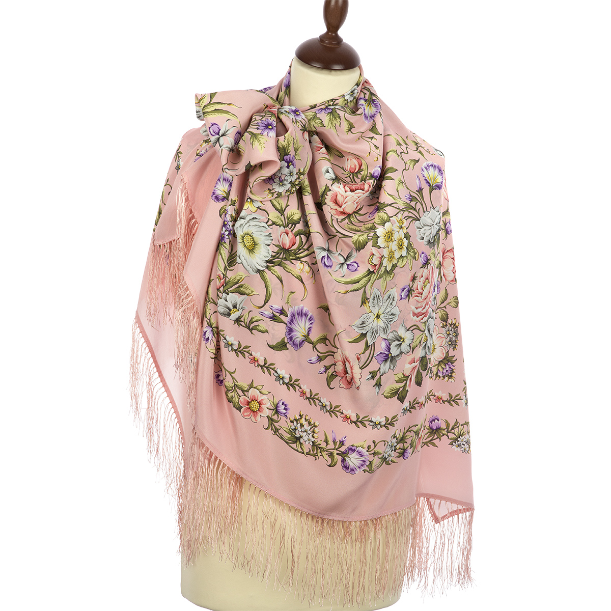 Платок шелковый (крепдешин, бахрома) "Цветущая весна", вид 3, 130х130 см