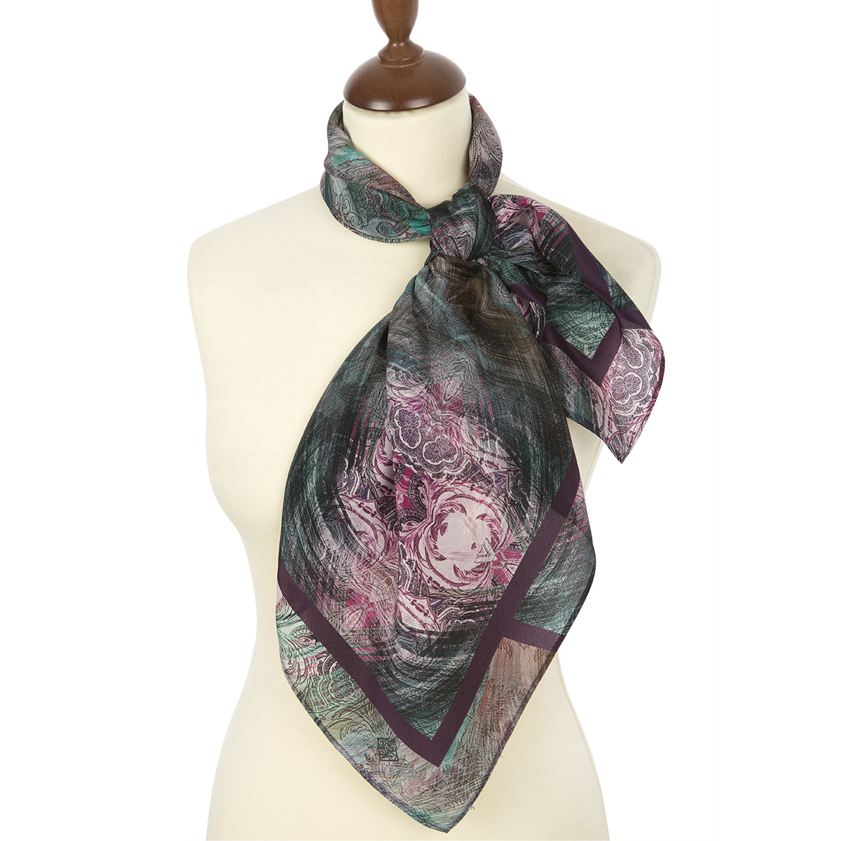 Платок шелковый (крепдешин) "Орнаментальный", вид 1, 89х89 см