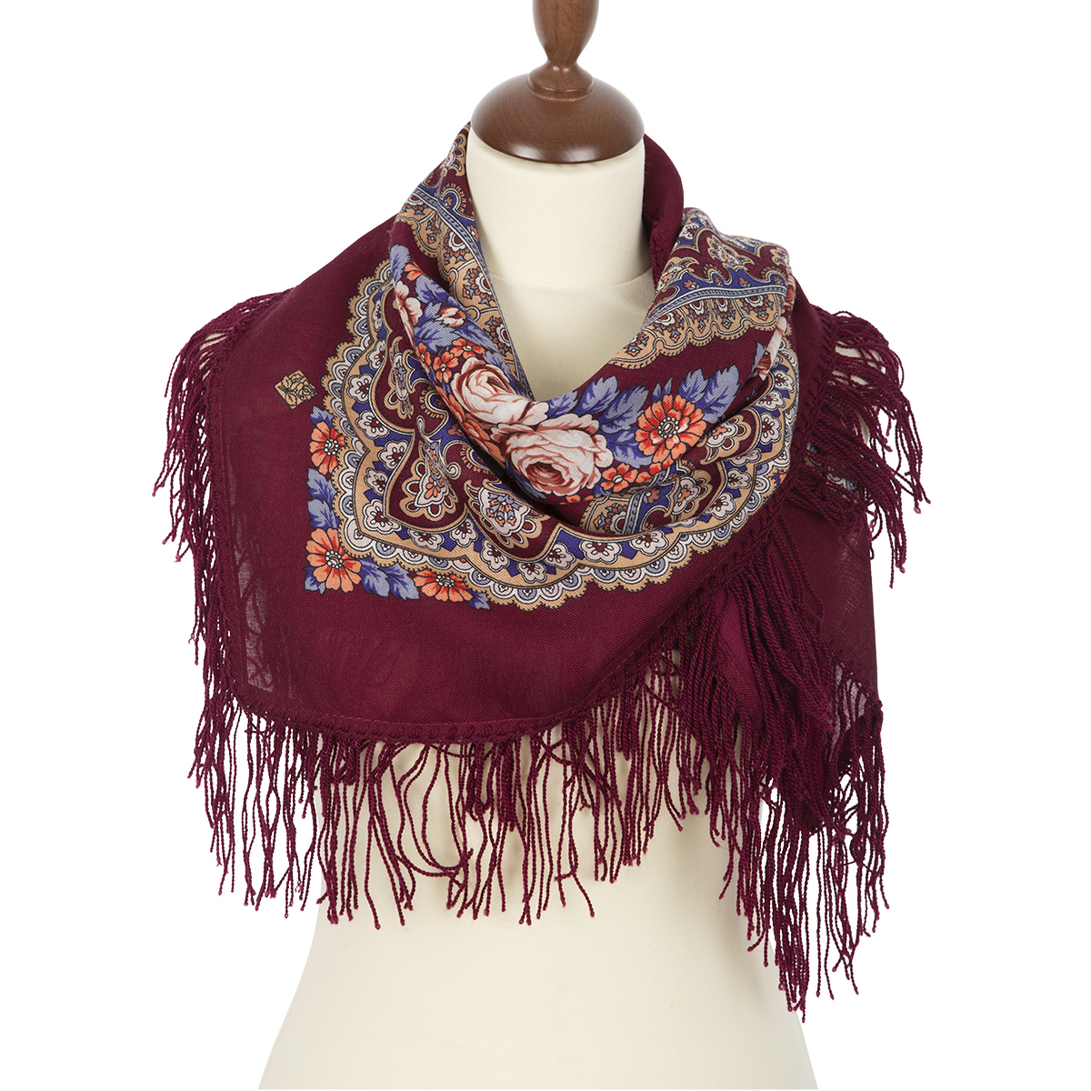 Платок шерстяной с шерстяной бахромой "Нежный вечер", вид 7, 89x89 см