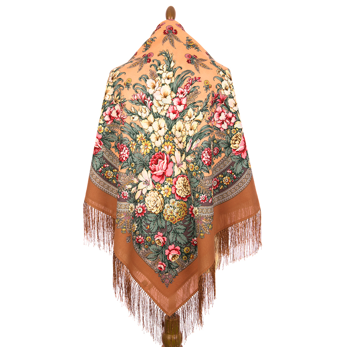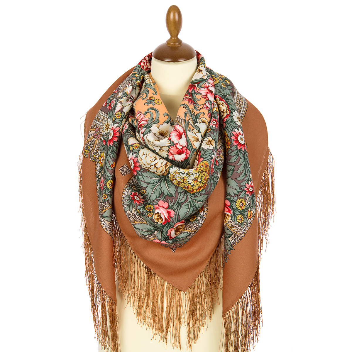 Платок шерстяной с шелковой бахромой "Златые дни", вид 16, 125х125 см