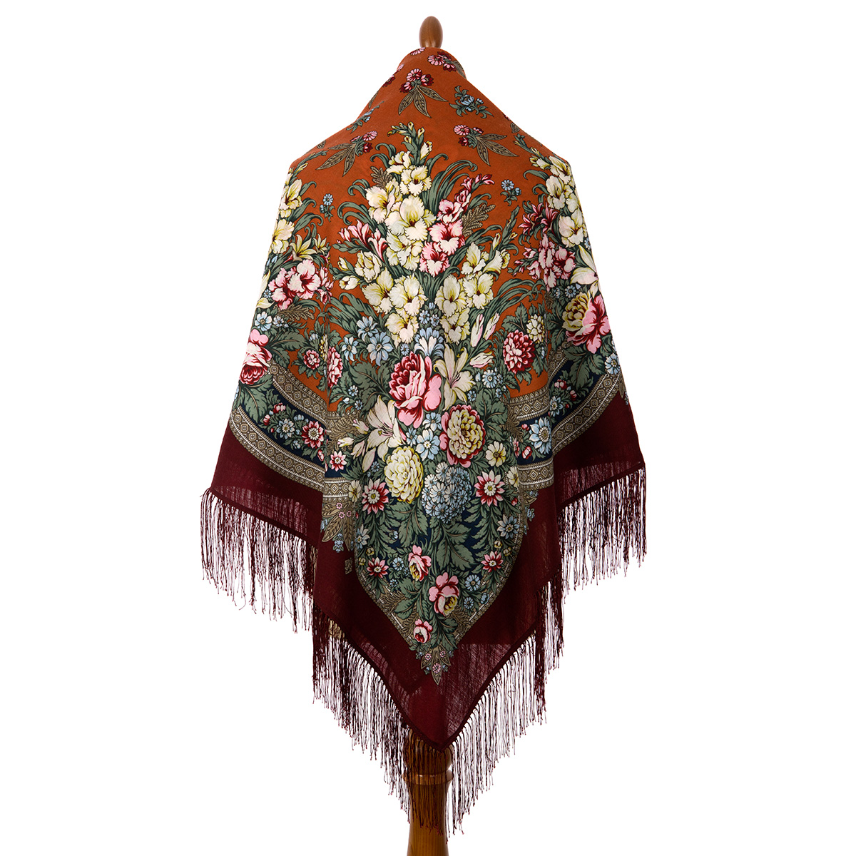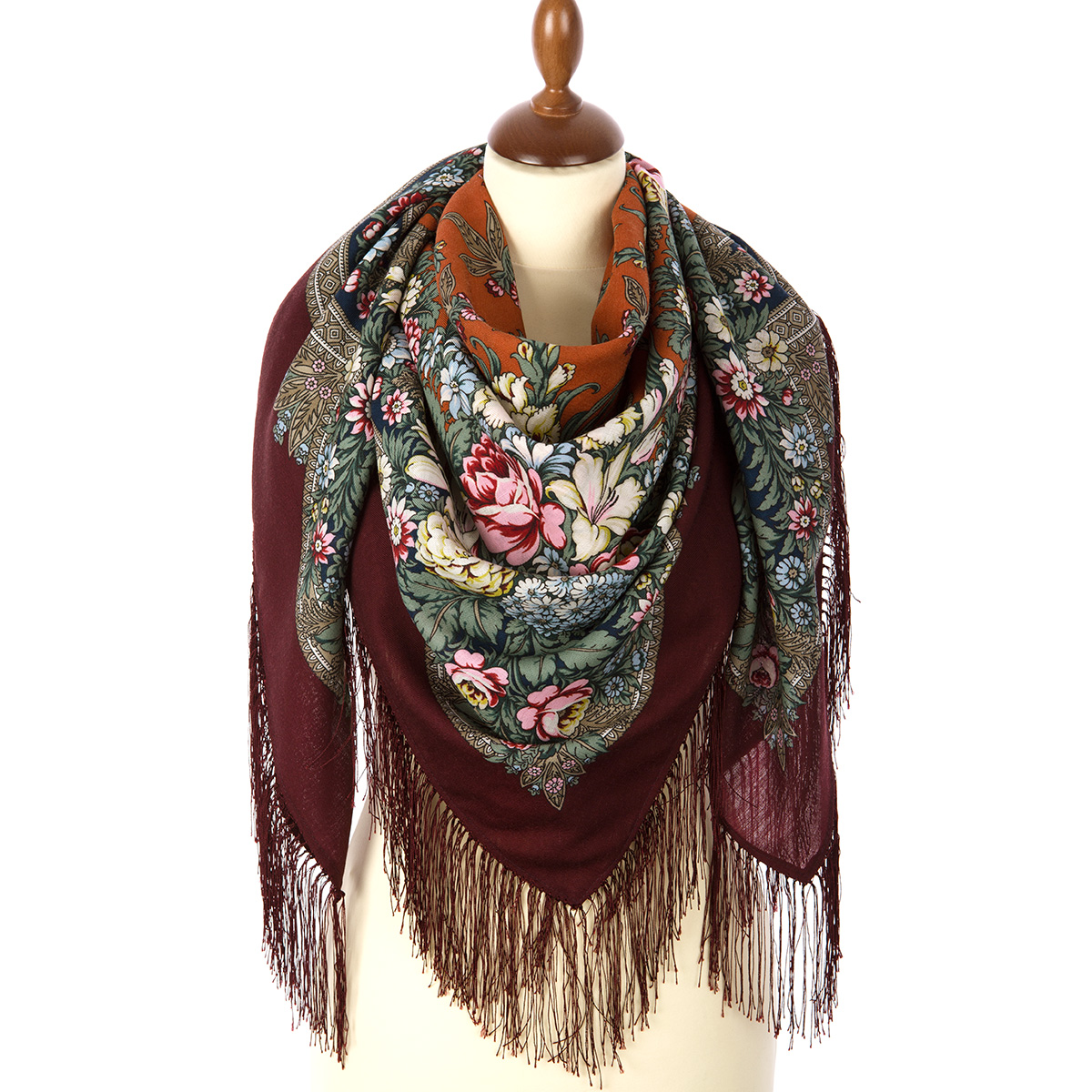 Платок шерстяной с шелковой бахромой "Златые дни", вид 7, 125х125 см