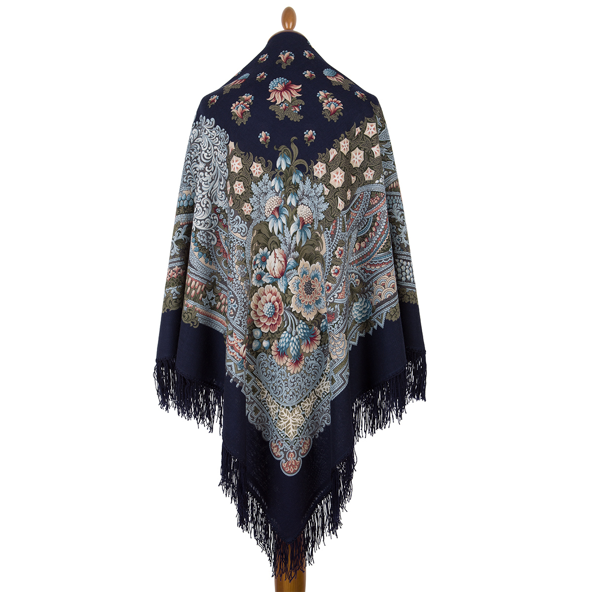 Платок шерстяной с шерстяной бахромой "Бархатная ночь", вид 14, 146x146 см