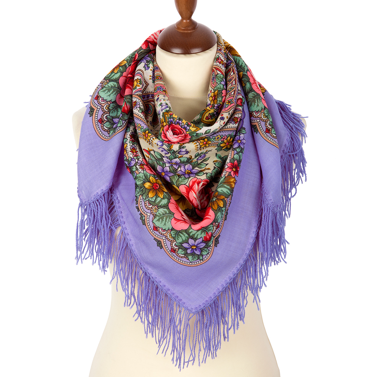 Платок шерстяной с шерстяной бахромой "Весенние зори", вид 1, 89x89 см