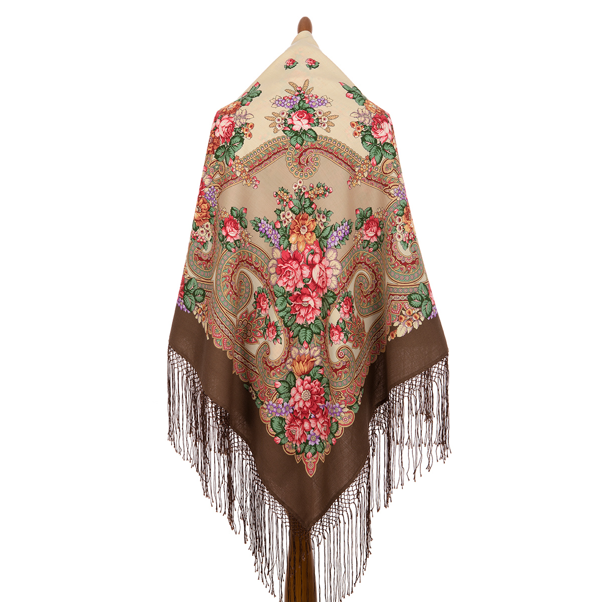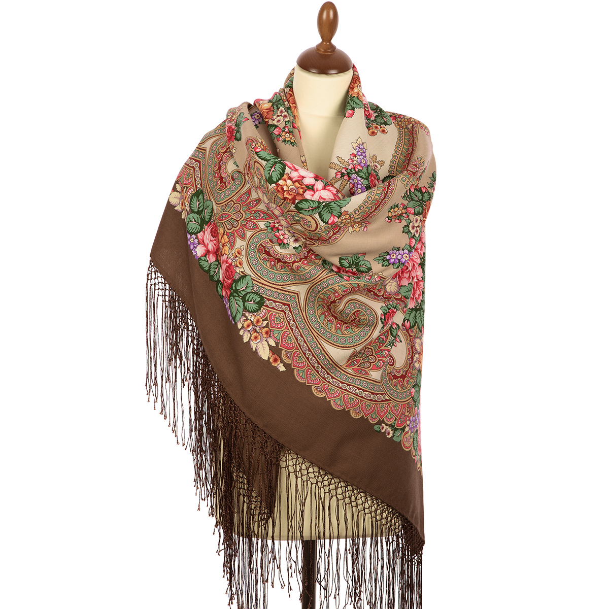Платок из уплотненной шерстяной ткани с шелковой бахромой "Лабзинский", вид 16, 148х148см