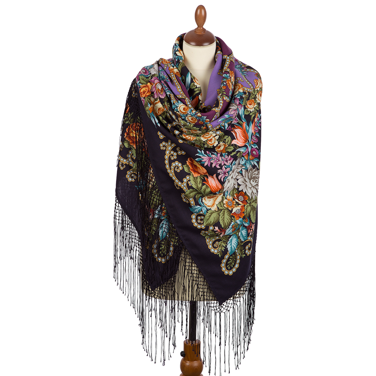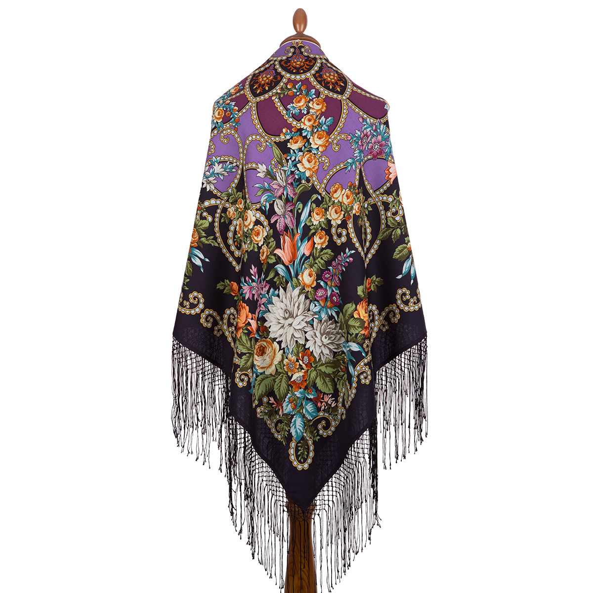 Многоцветный платок из уплотненной шерстяной ткани с шелковой бахромой "Цыганка Аза", вид 15, 148х148см