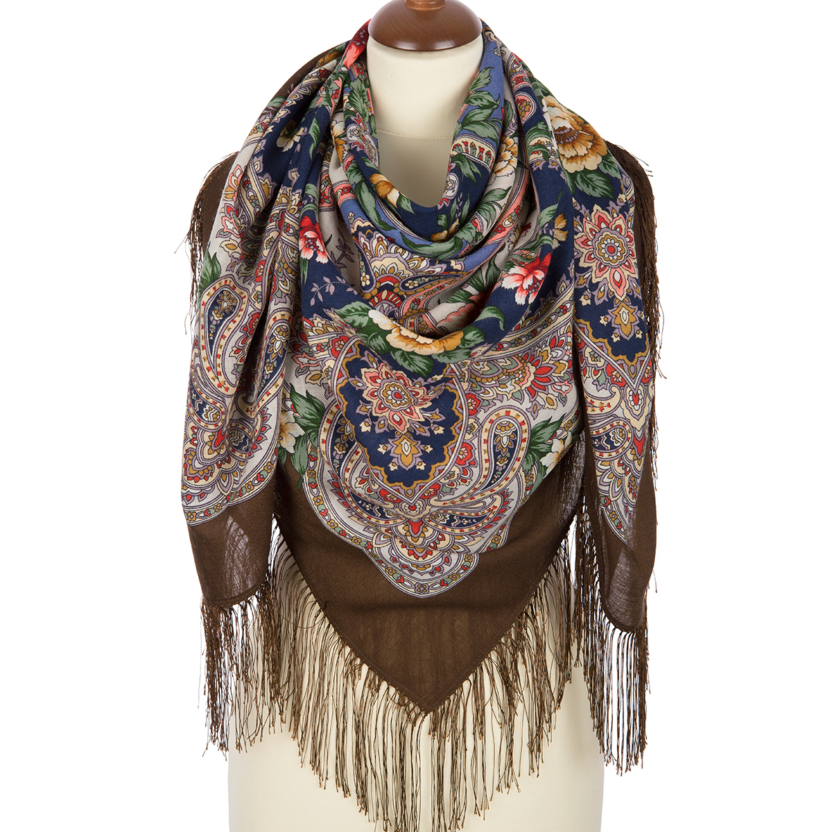 Платок шерстяной с шелковой бахромой "Море и небо", вид 16, 125х125 см