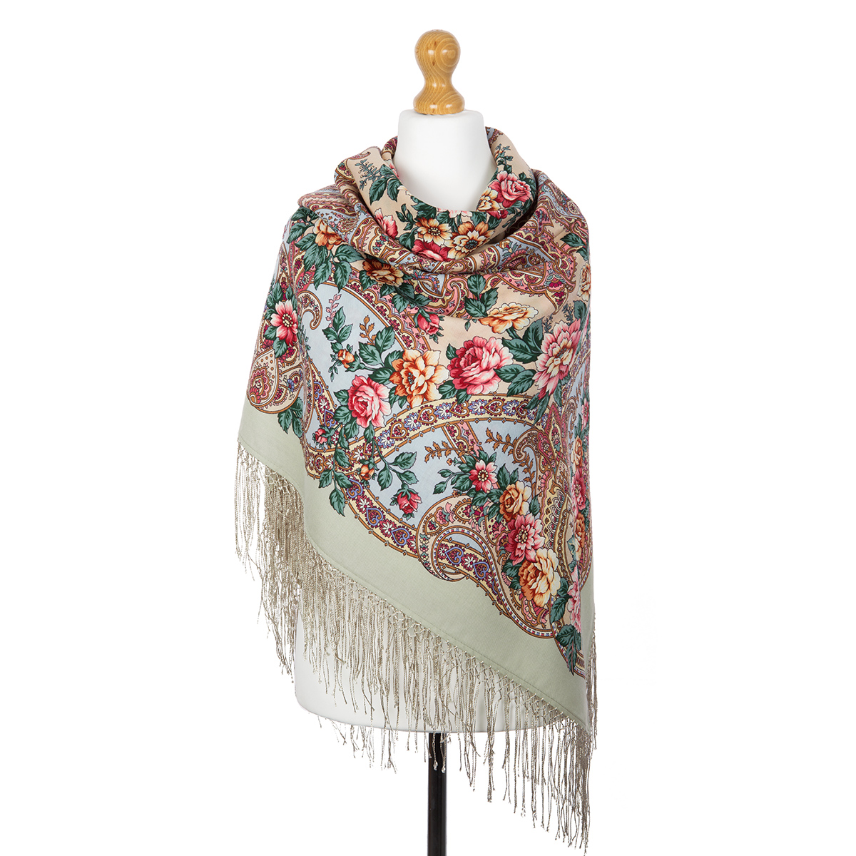 Платок шерстяной с шелковой вязаной бахромой "Река любви", вид 1, 135х135 см