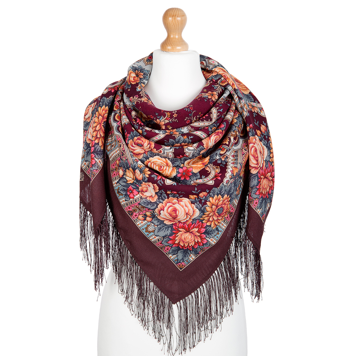 Платок шерстяной с шелковой бахромой "Кармелита", вид 8, 125х125 см