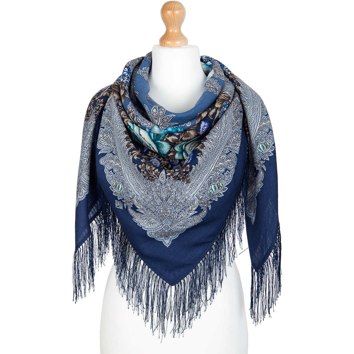 Платок шерстяной с шелковой бахромой "На гребне волны", вид 1, 125х125 см