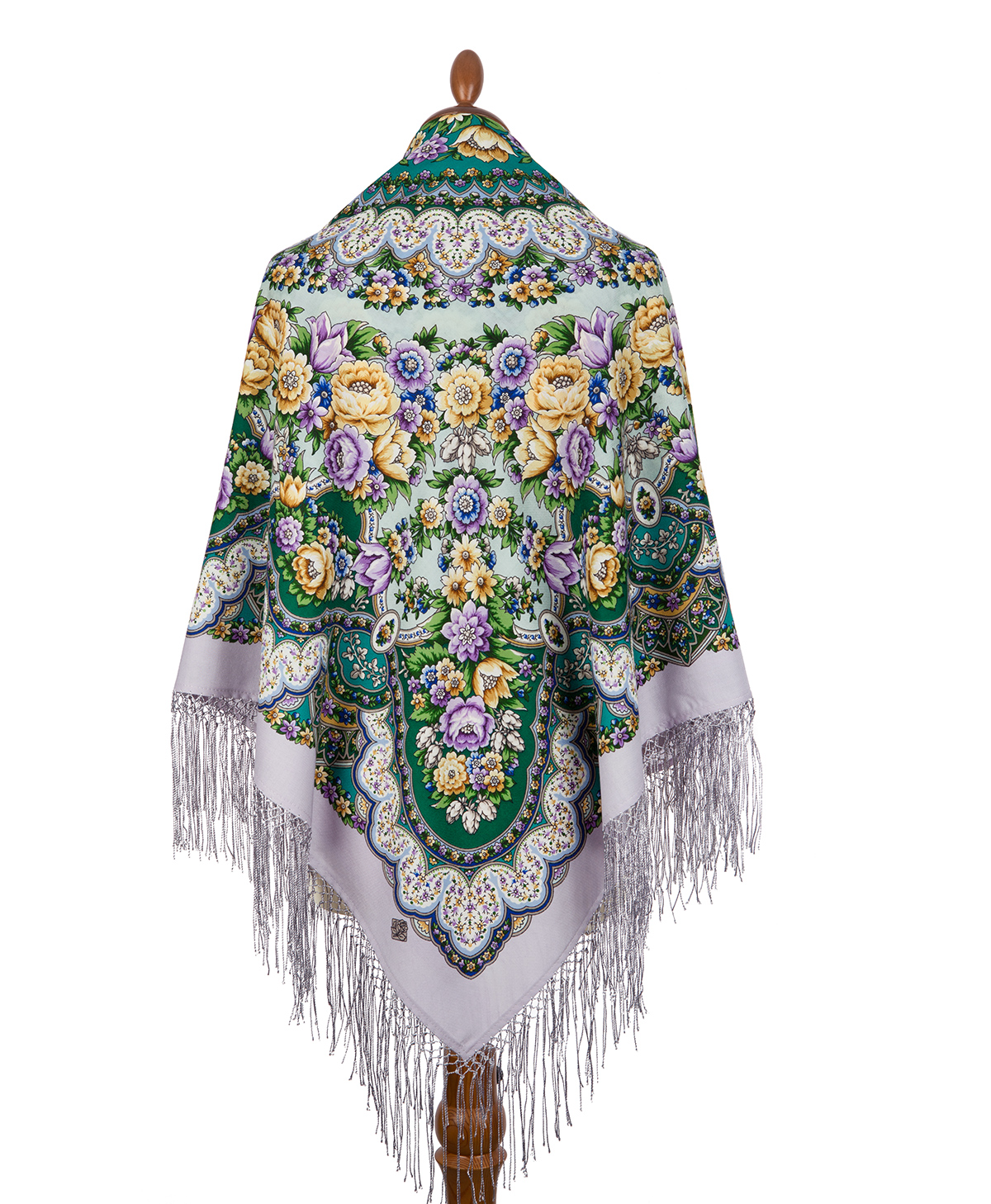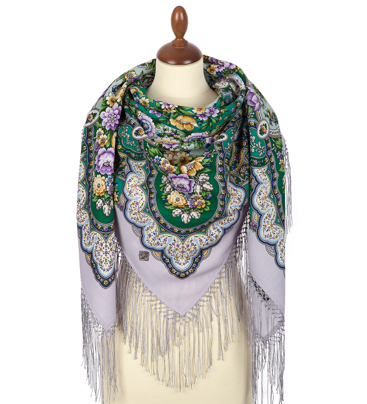 Платок шерстяной с шелковой бахромой "Дождь", вид 1, 135х135 см