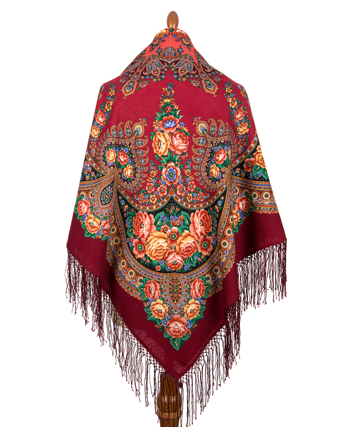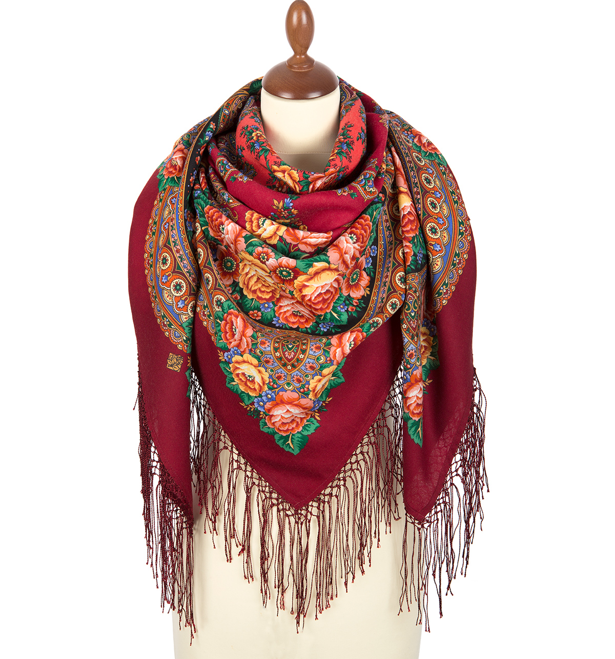 Платок шерстяной с шелковой вязаной бахромой "Пламень сердца", вид 6, 135х135 см