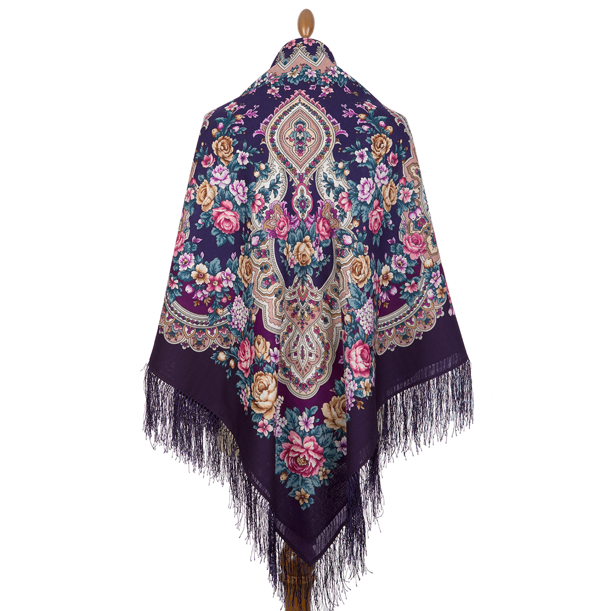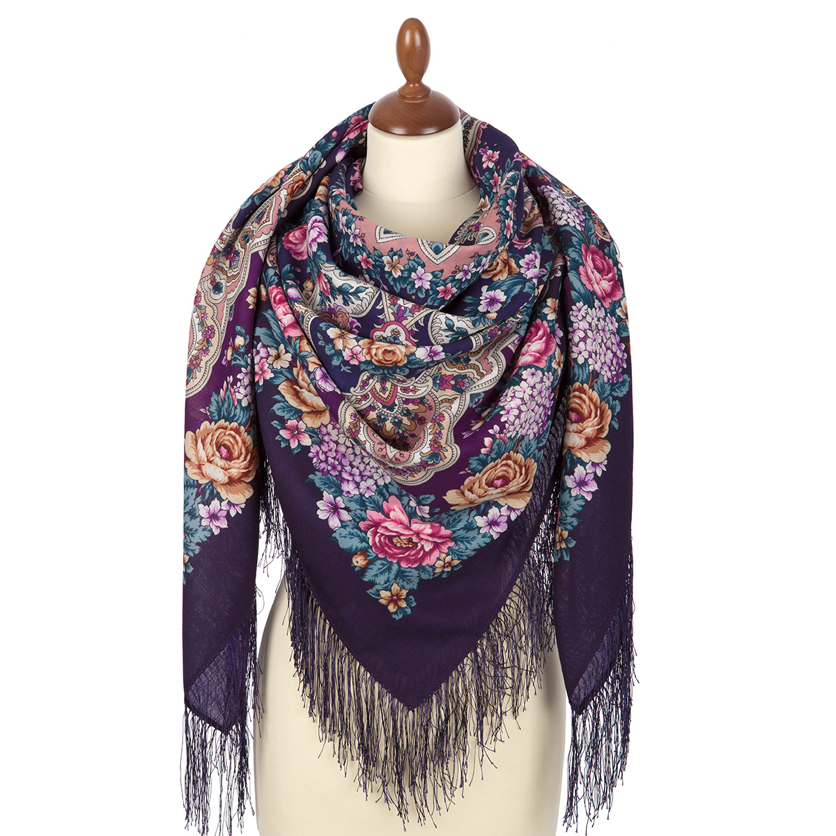 Платок шерстяной с шелковой бахромой "Княжна", вид 15, 146x146 см