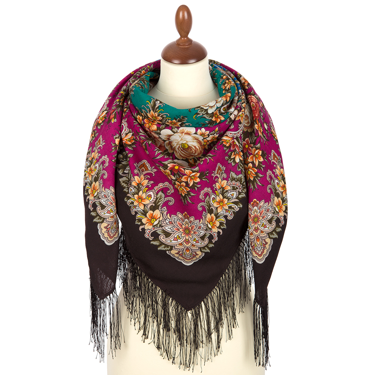 Платок шерстяной с шелковой бахромой "Услада", вид 17, 125х125 см