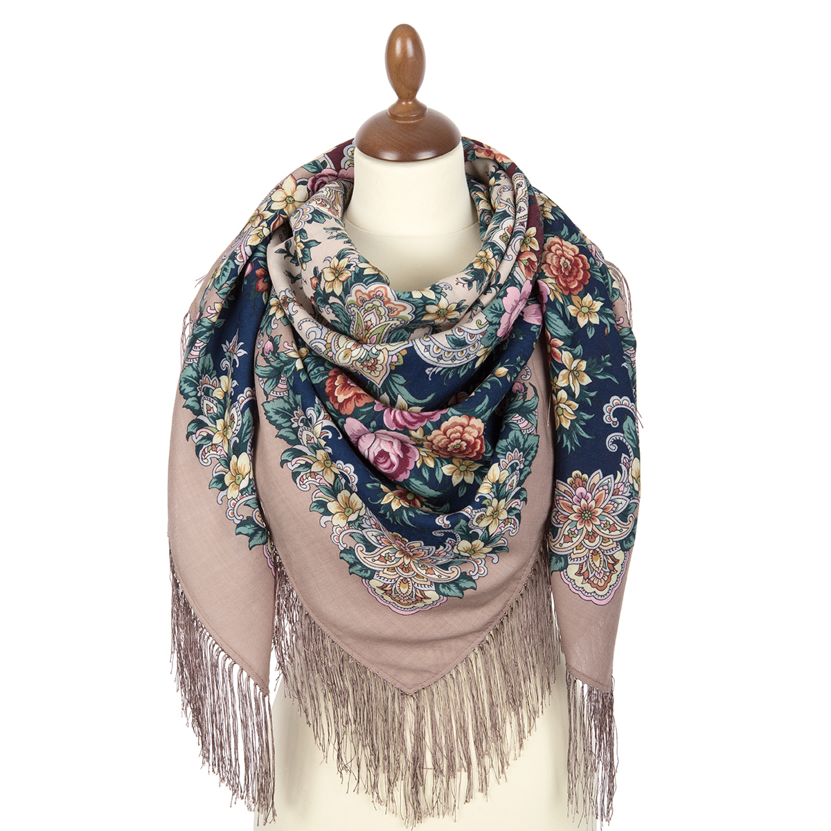 Платок шерстяной с шелковой бахромой "Услада", вид 2, 125х125 см