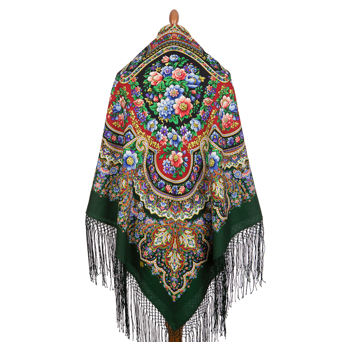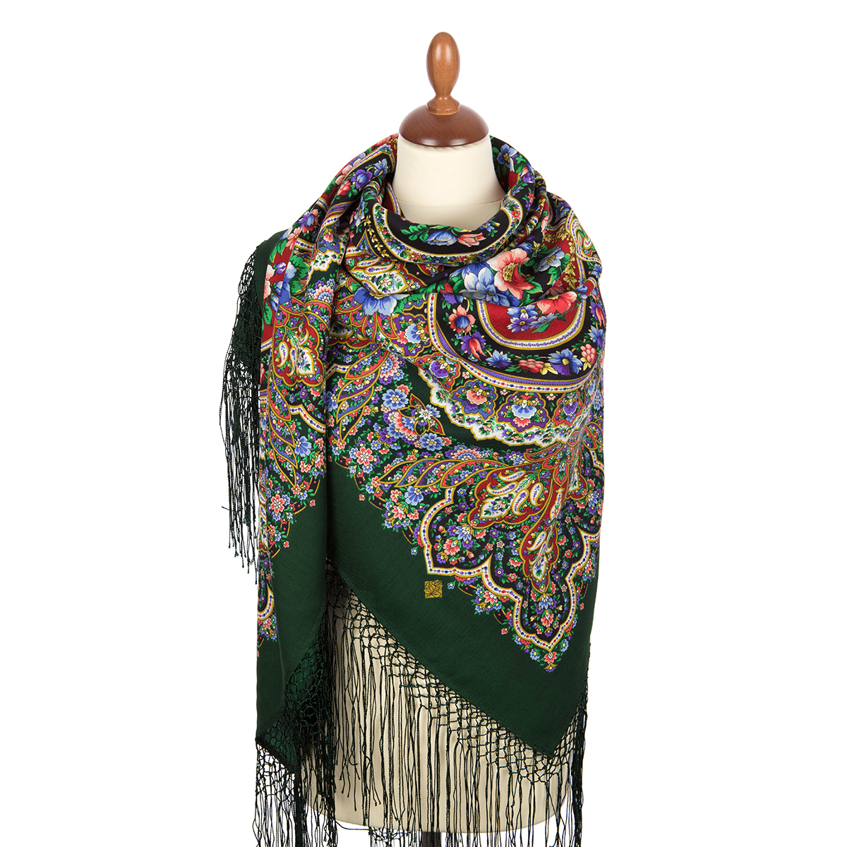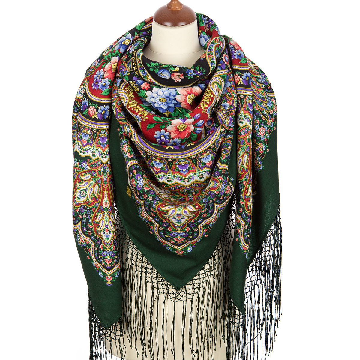 Платок из уплотненной шерстяной ткани с шелковой бахромой "Идиллия", вид 9, 148х148см