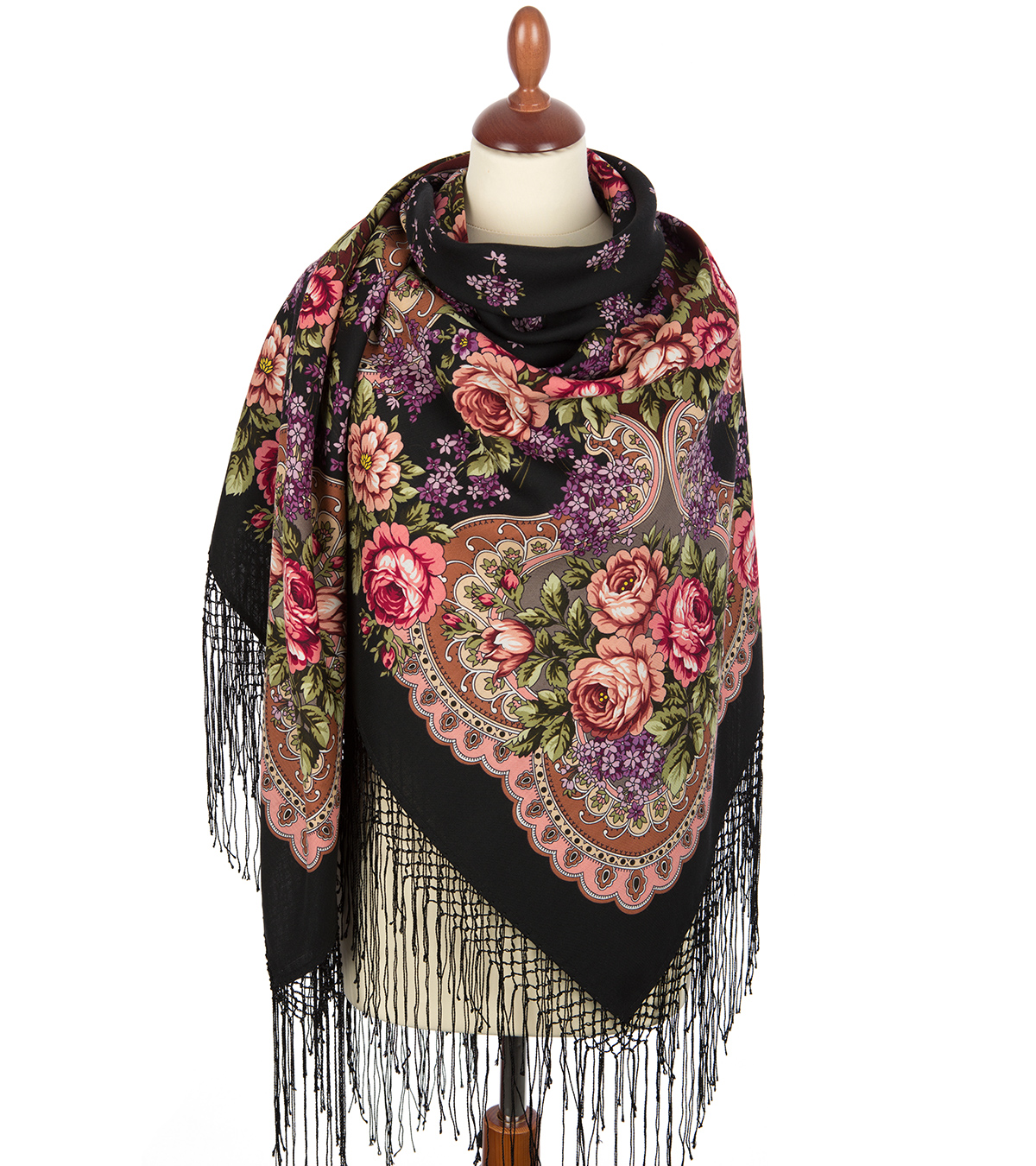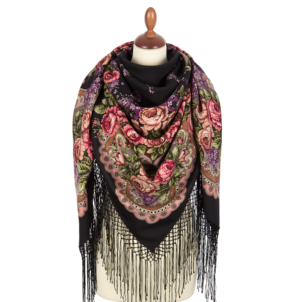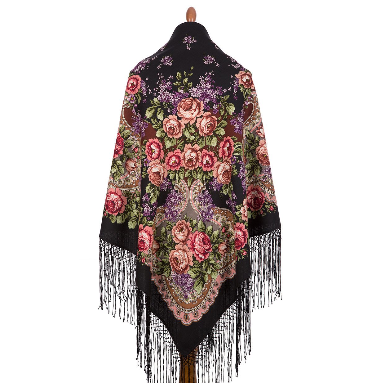 Многоцветный платок из уплотненной шерстяной ткани с шелковой бахромой "Сиреневый туман", вид 19, 148х148см