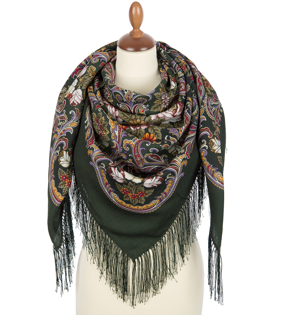 Платок шерстяной с шелковой бахромой "Песнь уходящего лета", вид 10, 125х125 см