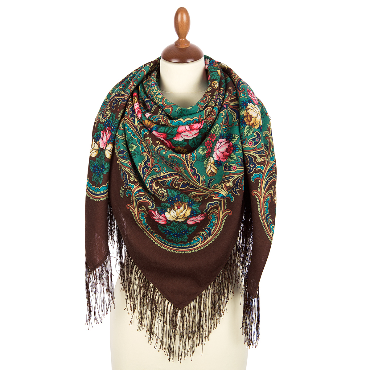 Платок шерстяной с шелковой бахромой "Песнь уходящего лета", вид 17, 125х125 см