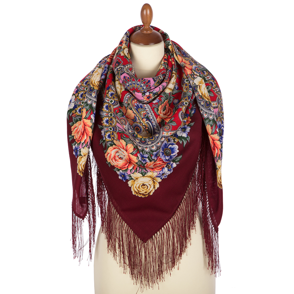 Платок шерстяной с шелковой бахромой "Девица-краса", вид 6, 125х125 см