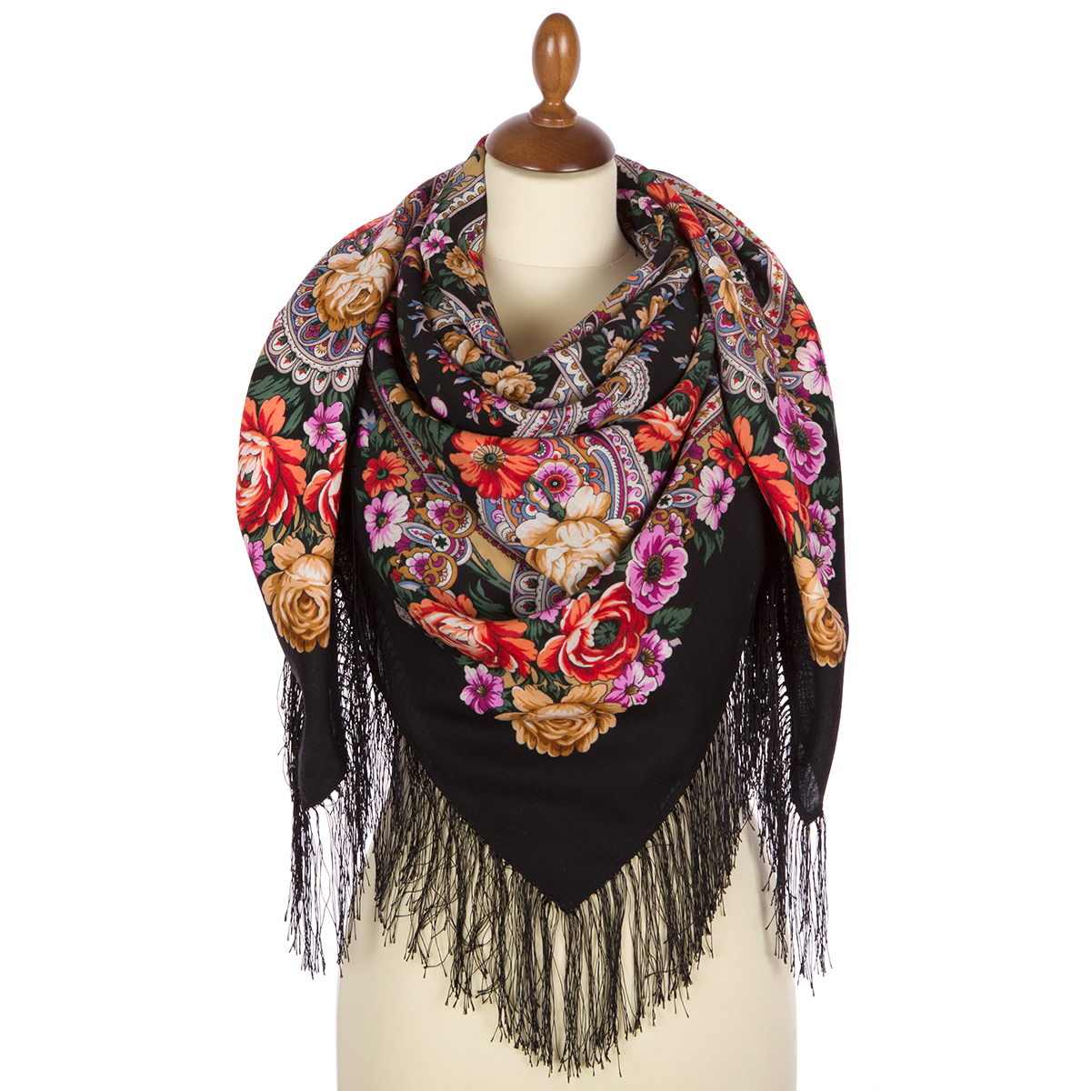 Платок шерстяной с шелковой бахромой "Девица-краса", вид 18, 125х125 см