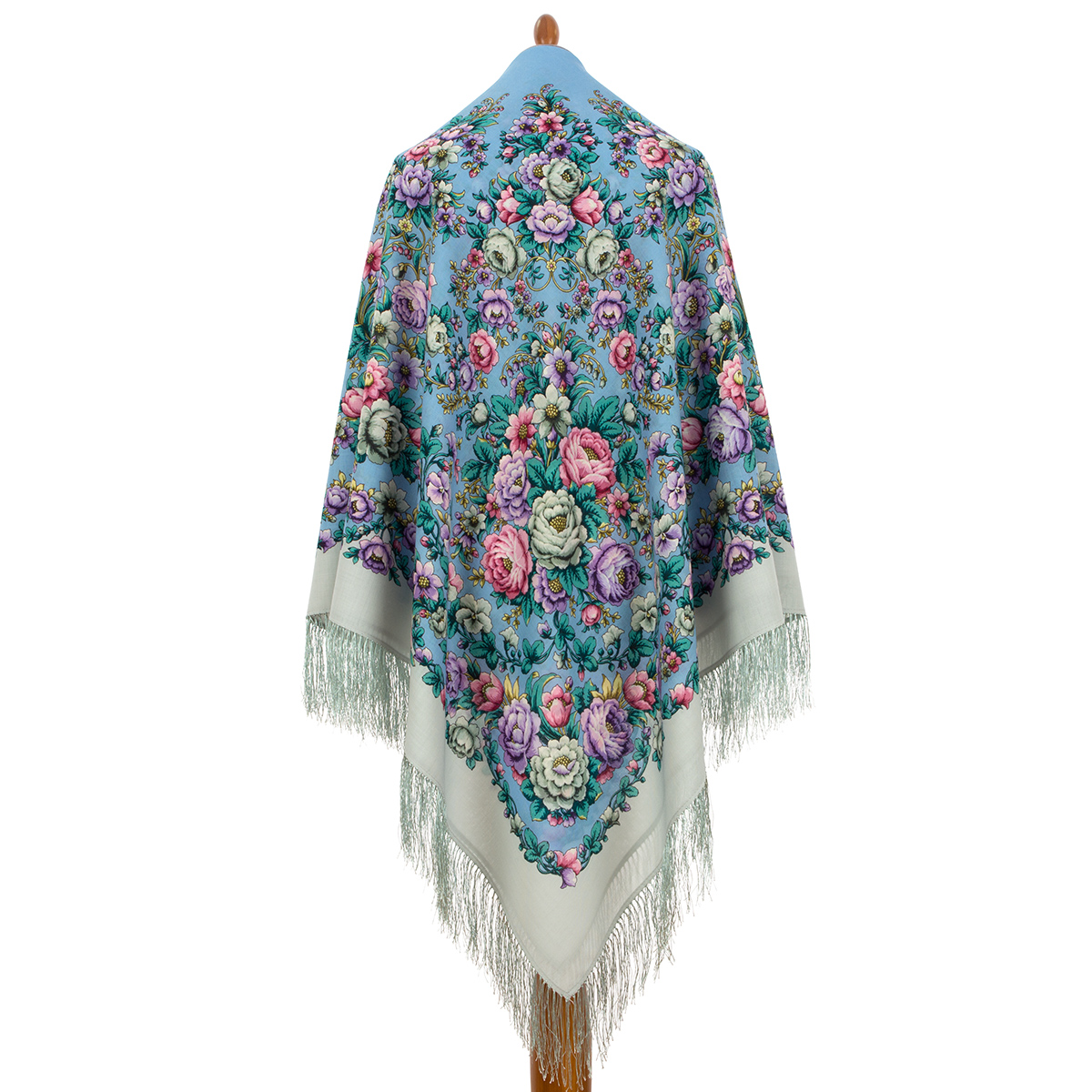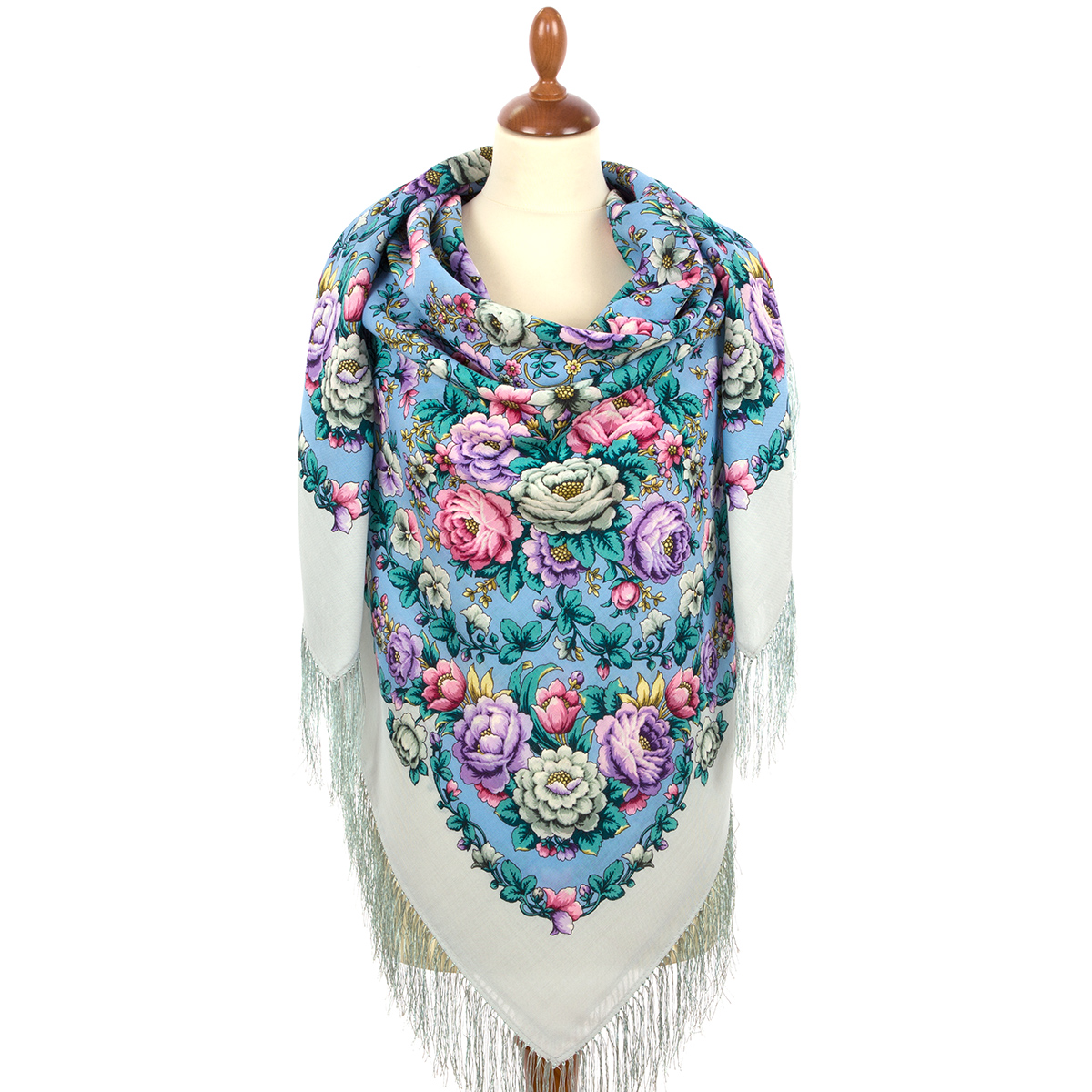 Платок шерстяной с шелковой бахромой "Пава", вид 1, 146x146 см