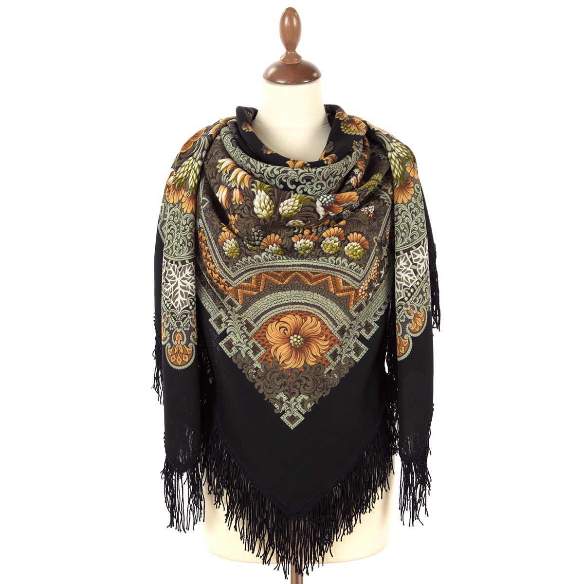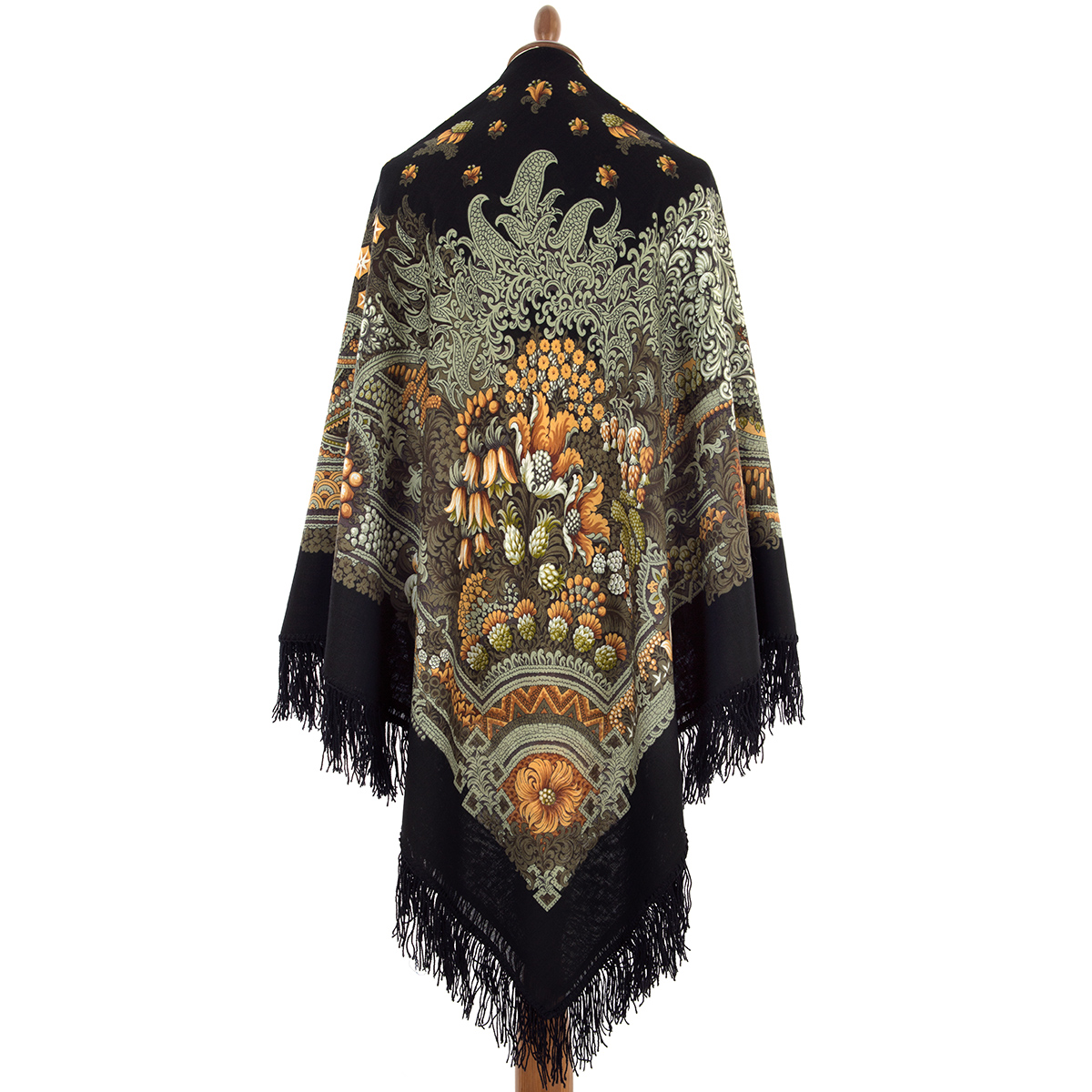 Платок шерстяной с шерстяной бахромой "Бархатная ночь", вид 19а, 146x146 см