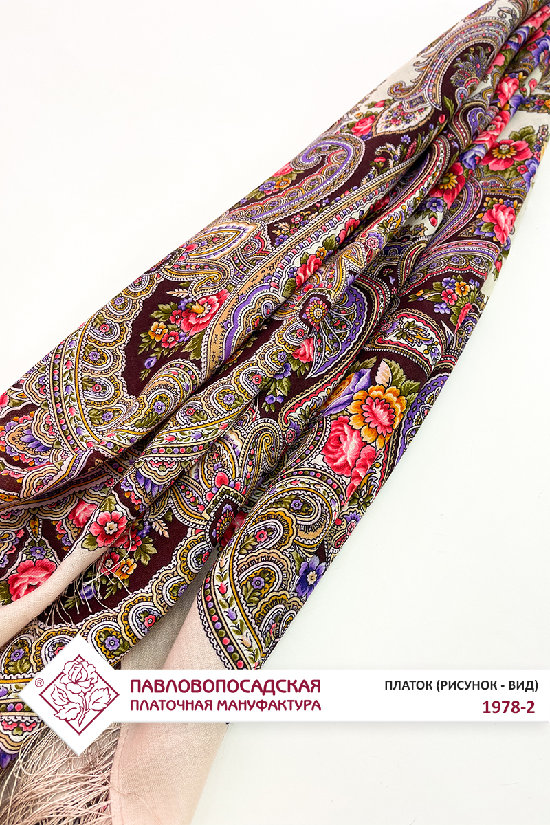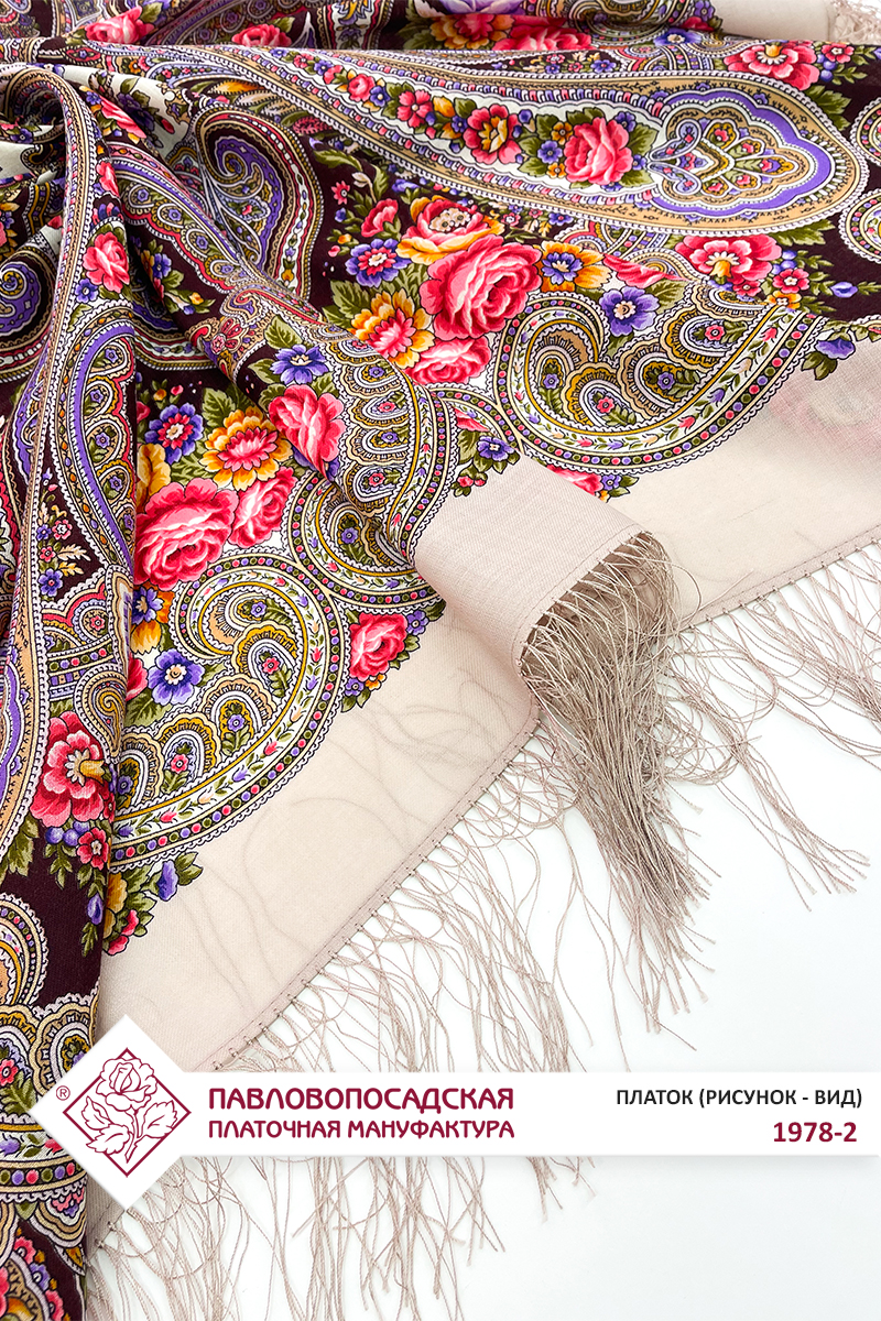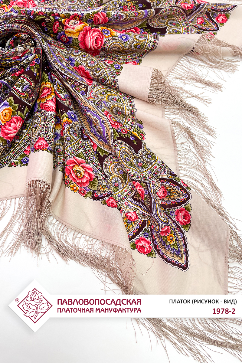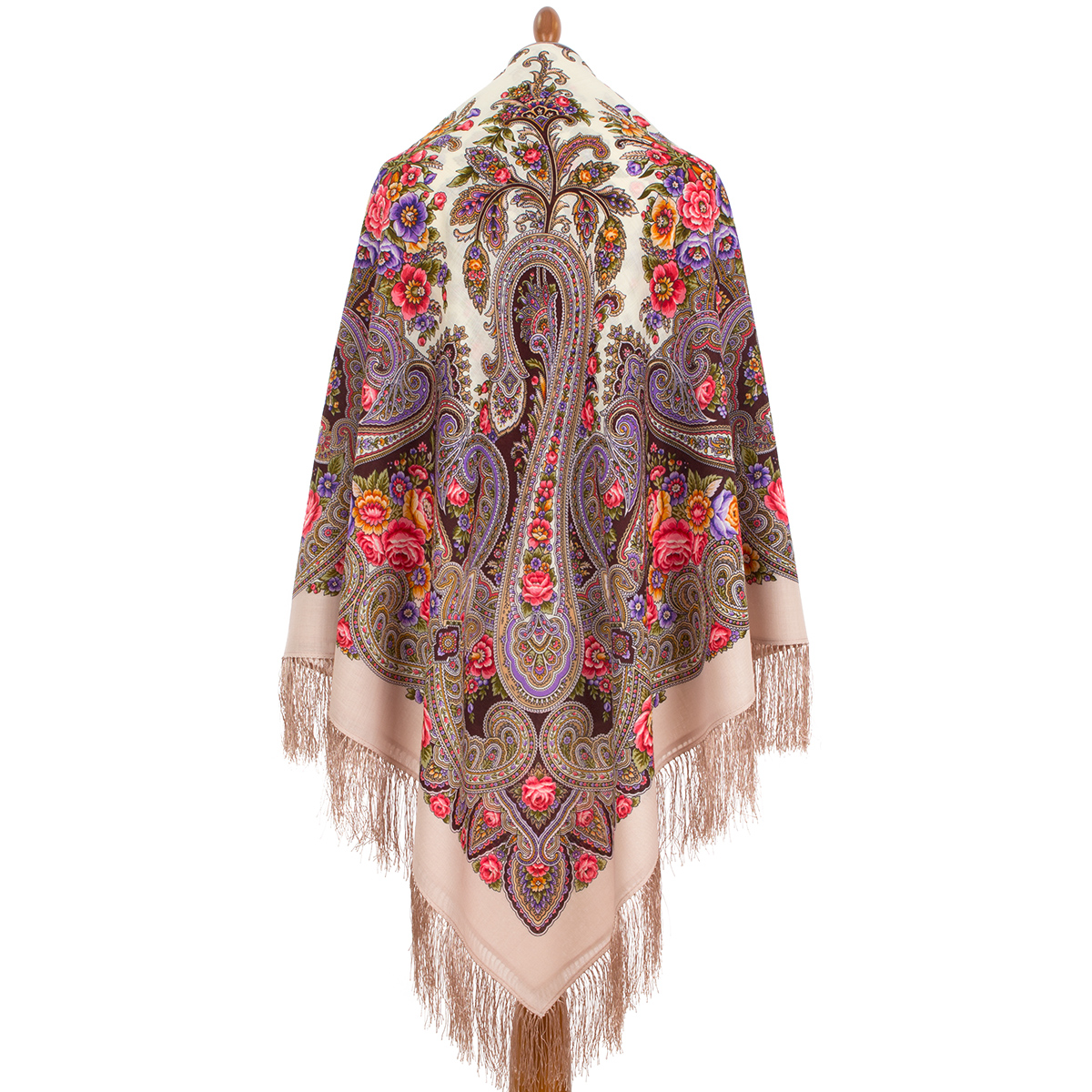 Платок шерстяной с шелковой бахромой "Фиалковые ночи", 1978-2, 146x146 см