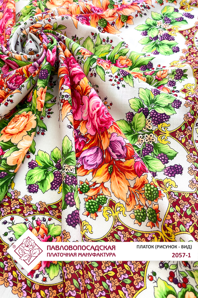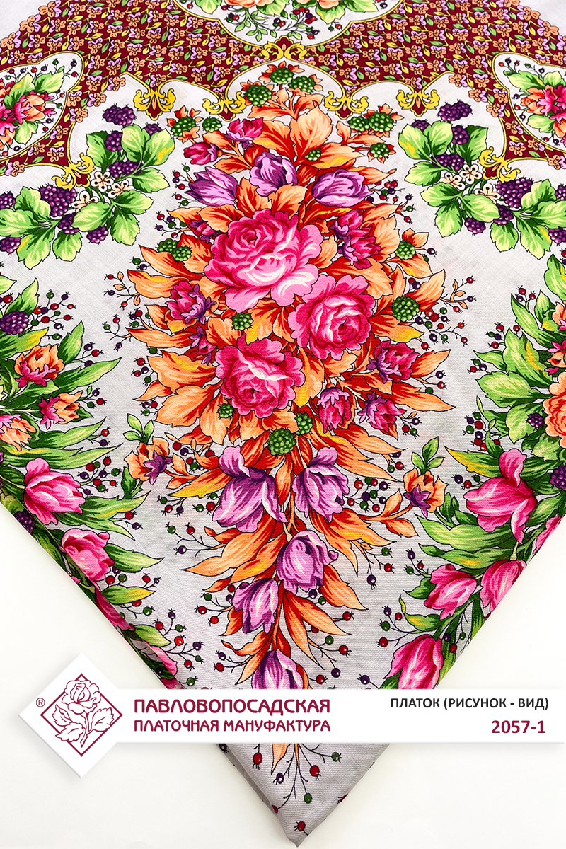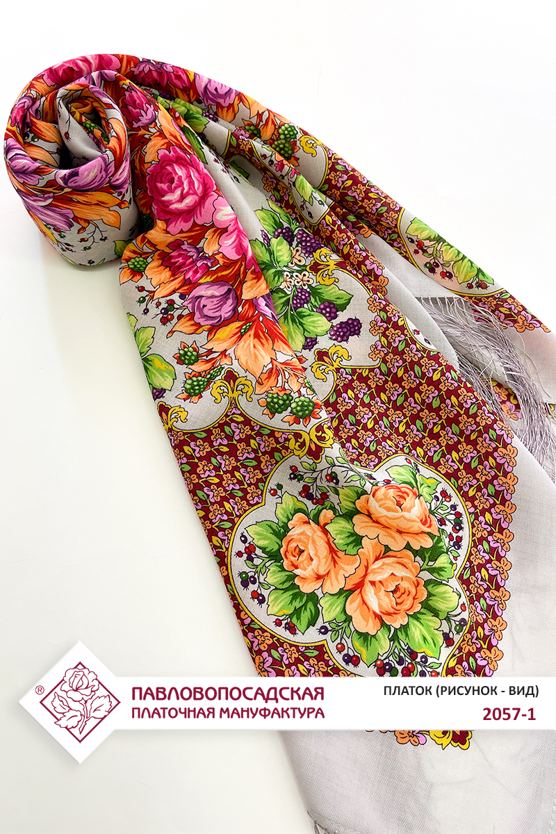 Платок шерстяной с шелковой бахромой "Аромат цветущих роз", 2057-1, 125х125 см